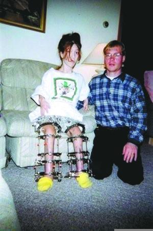在這幸福的背后是蒂凡尼經受的拉骨增高手術帶來的痛苦。“醫生敲斷我的腿骨,在斷裂的骨骼里植入一個裝置,這種裝置能夠將骨頭拉長。”蒂凡尼的脛骨、腿骨和臂骨共接受了12次手術,最后身高增加了大約35厘米,達到1.47米。