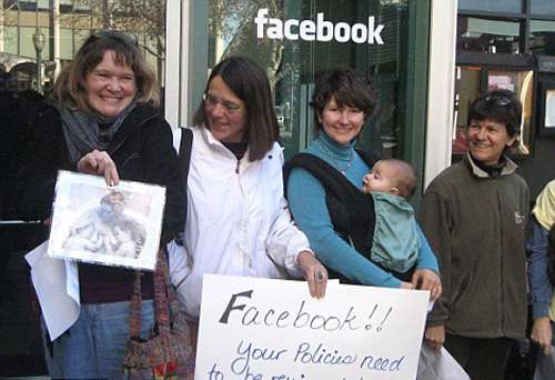 部分婦女更在Facebook位于加州帕洛阿爾托的總部前示威,抗議Facebook禁止女性哺乳相片。Facebook在未預先警告的情況下,刪除了數百名女用戶的哺乳照片,并通知她們若再有類似照片,將取消其賬戶。