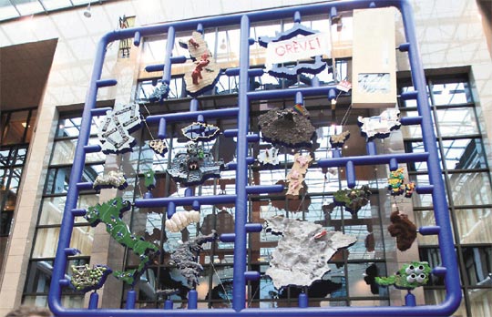 中新網1月16日電 據臺灣《聯合報》報道,捷克自今年元月1日起擔任歐盟輪值主席國,原本想收集27個歐盟成員國的象征性藝術創作,拼湊成一幅代表歐盟的雕塑,在15日公開展出。想不到負責此計劃的畫家施爾尼找了幾個同伙,擅自將保加利亞描繪成馬桶、荷蘭描繪成遭受海水澆灌的水鄉澤國,因而引起外交風波。