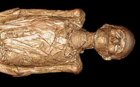 據(jù)英國媒體報(bào)道,美國芝加哥大學(xué)科學(xué)家日前利用X光掃描設(shè)備掃描的這具木乃伊被認(rèn)為是公元前800年,埃及底比斯神廟祭司時(shí)一名唱歌婦女的尸體。考古學(xué)家從安放該木乃伊的棺材上的雕刻文字認(rèn)定該木乃伊名叫梅熱薩姆(Meresamun)。從掃描的圖像上可看到當(dāng)時(shí)包裹尸體時(shí)使用的制作精良的裝飾品。