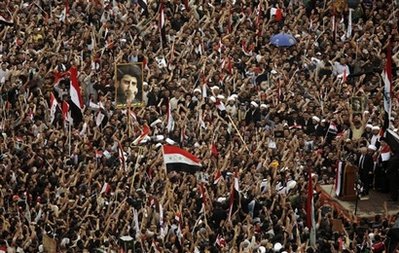 另據(jù)報道,伊拉克民眾擠滿了通向巴格達(dá)“天堂廣場”(Firdos Square)的道路。此次抗議集會由伊拉克什葉派主要反美人物薩德爾發(fā)起。游行隊伍冒著小雨從巴格達(dá)城北的薩德爾城出發(fā),一路游行至市中心的“天堂廣場”。
