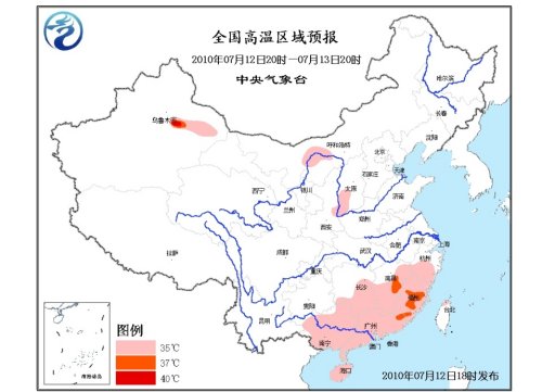 中新網7月12日電 中央氣象臺7月12日18時繼續發布高溫藍色預警:預計,明天白天,內蒙古河套地區、陜西關中東部、山西西南部、湖南中南部、江西中南部和東北部、浙江中南部、福建大部、廣東大部、廣西大部、海南大部、臺灣西北部等地有35℃以上高溫天氣、局地溫度可達37~38℃。