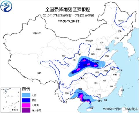 中新網(wǎng)7月23日電 中央氣象臺2010年7月23日06時(shí)繼續(xù)發(fā)布暴雨黃色預(yù)警: