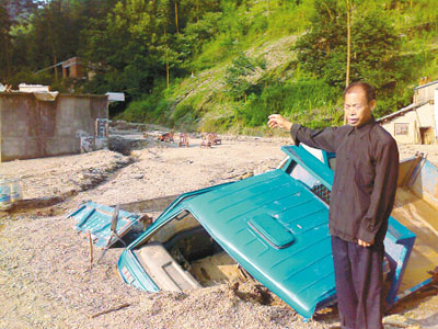 道路被毀、農田被沖、通信中斷、地處偏遠、救災物資無法進去——(陜西)山陽縣長溝鎮災情十分嚴重。7月27日上午,記者從福銀高速鵲嶺隧道口,徒步40公里,沿板蒼溝向長溝鎮進發。沿河道向上進發十多里,是板蒼溝村。7月24日凌晨的那場特大洪災,造成3人死亡,1個小男孩被洪水沖走。小男孩叫“拉拉”,今年7歲,出事前和爺爺胡仁海相依為命。
