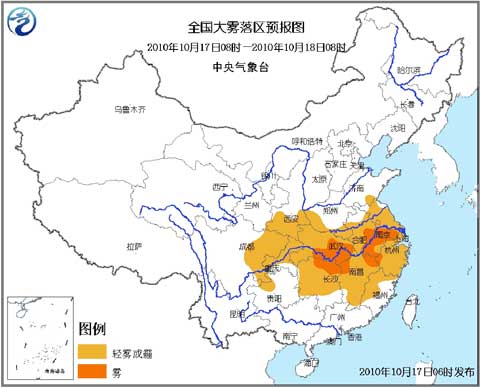 中新網(wǎng)10月17日電 據(jù)中央氣象臺消息,中央氣象臺10月17日06時繼續(xù)發(fā)布大霧藍色預(yù)警:預(yù)計今天(17日)早晨到上午,黃淮南部、陜西南部、江淮、江漢、四川盆地大部、重慶大部、江南大部、福建中西部等地將有輕霧或霾。