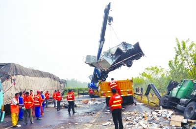 昨天上午8時許,受大霧影響,鹽徐高速公路建湖境內發生連環追尾事故,15輛車自西向東撞到一起。記者獲悉,事故現場造成一人死亡,多人受傷。鹽徐高速也一度受到嚴重影響。
