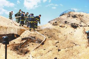 6月1日,消防官兵在中儲糧林甸直屬庫清理火災事故現場。