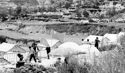 鮮紅的黨旗飄揚在岷縣震區臨時安置點上。連日來,在社會各界的援助下,岷縣漳縣震區群眾生活基本得到保障。本報記者 呂亞龍