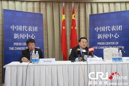 中國外交部副部長程國平(右)召開新聞發布會