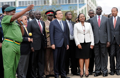 中新網(wǎng)內(nèi)羅畢5月11日電(記者 郭金超) 李克強(qiáng)11日在肯副總統(tǒng)盧托陪同下到國(guó)家青年服務(wù)隊(duì)參觀。這里供學(xué)員實(shí)習(xí)的鉆井、起重、消防等裝備不少來(lái)自中國(guó)。李克強(qiáng)攀上一輛移動(dòng)維修車(chē)查看并詢問(wèn)維護(hù)等服務(wù)情況。他說(shuō),要用好中國(guó)裝備和技術(shù)優(yōu)勢(shì),幫助非洲青年提升職業(yè)技能,促當(dāng)?shù)鼐蜆I(yè)。