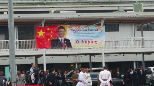 雖然時間短暫,但斐濟對習大大的到來那是相當的重視。傍晚,習大大專機抵達楠迪國際機場時,斐濟總理姆拜尼馬拉馬夫婦親自到舷梯旁迎接,并在機場舉行歡迎儀式。楠迪街頭,隨處可見習大大巨幅照片,當地人揮舞兩國國旗,在中國代表團車隊經過的路線沿途迎接。