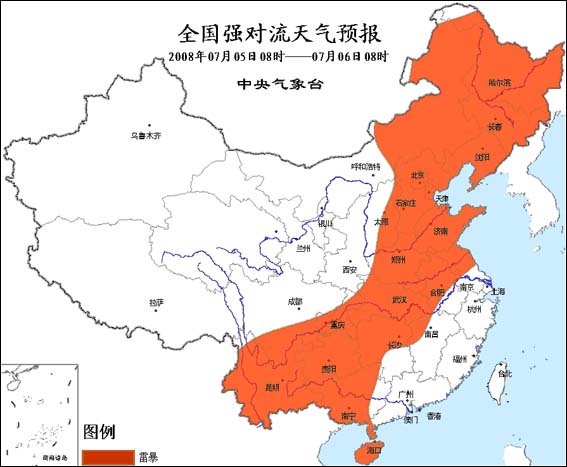 中新網(wǎng)7月5日電 據(jù)問天網(wǎng)消息:中央氣象臺5日6時繼續(xù)發(fā)布強對流天氣預報。