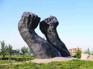陳雙全任市長(zhǎng)期間,銅川市內(nèi)的“雙拳”雕像。本報(bào)記者 楊繼斌 攝