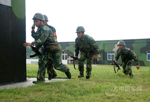 “接到上級通報(bào),一名恐怖分子侵入我導(dǎo)彈庫區(qū),欲實(shí)施破壞。上級命令我部快速將其抓捕”。警衛(wèi)連應(yīng)急分隊(duì)隊(duì)長余立華下達(dá)作戰(zhàn)任務(wù)后,火速帶領(lǐng)隊(duì)員奔向目標(biāo)地域。8月8日,一場反恐演練在濟(jì)空某部展開。