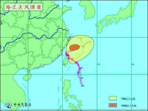 預(yù)計(jì),今天白天到夜間,受強(qiáng)熱帶風(fēng)暴“森拉克”影響,東海大部海域、臺(tái)灣以東洋面將有7-8級(jí)大風(fēng),“森拉克”中心經(jīng)過(guò)的附近海域的風(fēng)力可達(dá)9-10級(jí)。