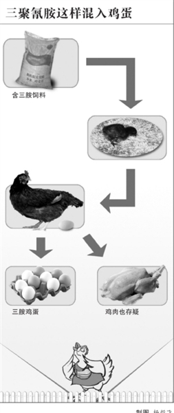 針對雞蛋里查出三聚氰胺的事件,記者昨天從食品專家和業內人士處了解到,雞飼料是造成問題雞蛋的罪魁禍首。