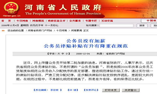 河南省澄清公務(wù)員加薪傳聞