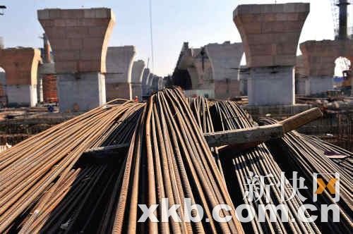 巨大的工地上塵土飛揚(yáng),豎立著數(shù)百座三層樓高、像高架橋一樣的水泥墩,有些上面還有有鋼制的柱子。每10秒就會有一輛工程車經(jīng)過。從湖南衡陽來的尹師傅說,眼前這種情況是最近三個月才出現(xiàn)的,工地之前還只是一個大坑。