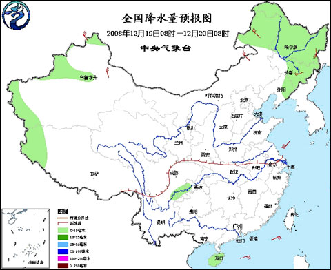 2008年12月19日8時—12月20日8時全國降水量預報圖