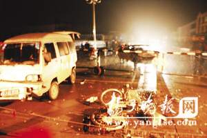 昨天凌晨零時14分,記者接到報料后連夜趕到事發現場阜寧縣益林鎮中心大街,在事發道口看到,一輛轎車、一輛面包車、一輛三輪車和一輛電動車受損嚴重,零部件散落在道口附近,有關部門正在清理事故現場。
