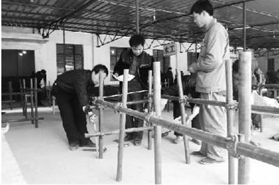 昨日13時30分,離開考時間還有半個多小時,已有100多名考生等在鄭州八方人才資源開發有限公司考試培訓基地院內了?紙鼍驮O在院內的操作教室內,地上擺了不少的鋼管、木料、磚塊和沙灰等建筑材料。當天要進行的是木工、模板工和砌磚工的考試。