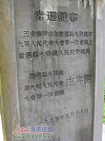 采訪中,記者聯系遵譚鎮委核實王安春的身份。遵譚鎮委辦公室的負責人告訴記者,王安春確實在澄邁永發鎮當過鎮長,后來還在該縣農業局就任副局長,在儒友村修造的活人墓,正是王安春所為。