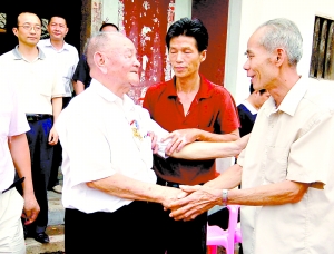 雖然回到故鄉只有短短的3天時間,但卻解了林峰67年的思鄉之苦!三天來,林峰受到了當地黨委政府和村干部們的熱情歡迎,所到之處,家鄉人民對這個抗日老兵都非常敬重,并為他當年投筆從戎投身抗日烽火的愛國情懷感到由衷的驕傲。