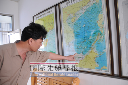 4月26日,廣西一家漁業公司負責人向本報記者講述北海漁民南沙作業的情況。 趙葉蘋/攝