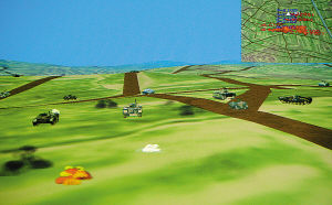 “我們正在組織官兵利用戰術對抗模擬訓練系統開展訓練!甭瞄L趙立榮告訴記者。為改進裝甲分隊戰術訓練手段,提高按綱施訓質量,該旅與石家莊機械化步兵學院聯合開發了全軍首家裝甲步兵戰術對抗模擬訓練系統!霸撥浖到y是以構建1∶1000的戰場地形環境和車輛、人員模型為基礎,所有參訓人員在三維虛擬戰場上訓練,其所聽、所見均與實車在現地作戰時一樣!