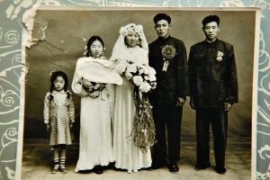 結婚照。當時收入很高的王學禮請了伴郎伴娘,還有租來的禮服,婚禮辦得非常洋氣和排場。