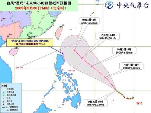 中新網(wǎng)9月30日電 據(jù)中國氣象局網(wǎng)站消息,今年第17號強(qiáng)熱帶風(fēng)暴“芭瑪”于30日下午在菲律賓以東洋面加強(qiáng)為臺風(fēng),30日17時(shí)其中心位于菲律賓馬尼拉東南方大約1560公里的洋面上,就是北緯10.3度、東經(jīng)134.7度,中心附近最大風(fēng)力有12級(35米/秒),中心最低氣壓為970百帕。