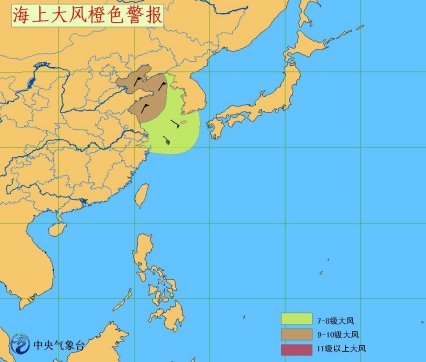 10日08時至11日08時,受強冷空氣和入海氣旋的共同影響,渤海、黃海大部海域、東海北部海域將有9級大風,陣風可達10-11級。