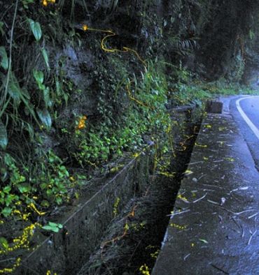 而在臥龍,付新華還發(fā)現(xiàn)了擁有33個(gè)發(fā)光器并同步發(fā)光的多光點(diǎn)螢,兩厘米長(zhǎng)、圓筒形的體形、金黃的體色,翅膀完全退化。白天,她躲藏在土縫中躲避敵害。夜晚,她爬出土縫,身上33個(gè)發(fā)光器持續(xù)發(fā)出黃綠色的亮光,使捕食者不敢侵犯。其實(shí)她是在保護(hù)懷中的卵。
