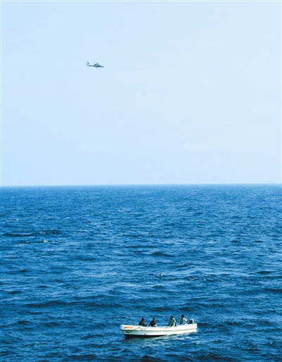 12時09分,中國海軍護航編隊接到求救信號后,迅速進入一級反海盜部署。馬鞍山艦、溫州艦、巢湖艦分別從不同方位向事發海域高速機動,巢湖艦艦載直升機搭載特戰隊員緊急升空進行搜索查證。