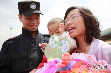 “歡迎回家。”這是援疆特警們踏上家鄉(xiāng)土地聽到的第一句問候,但在迎接戰(zhàn)友凱旋的民警心里,這句話已經(jīng)憋了很久。一聲問候、一束鮮花、一個大大的擁抱,不少特警被戰(zhàn)友拉到一邊合影。昆明市公安局特警支隊(duì)政治處主任楊春雷激動地說:“踏上家鄉(xiāng)的土地,看到家鄉(xiāng)的親人、朋友心中格外高興。特警隊(duì)員們圓滿完成赴疆維穩(wěn)工作,無愧于家鄉(xiāng)父老鄉(xiāng)親。”
