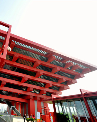 2009年5月25日,上海世博會中國館“東方之冠”正式吊裝具有濃郁中國色彩的“中國紅”外立面,開始進入為期兩個月的外立面掛板作業(yè)。
