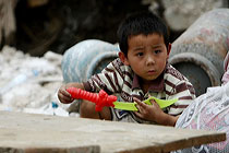 泥石流是山體松動造成的,常常發生在半干旱的山區或高原冰川區。這里地形陡峭,樹木植被很少,一旦暴雨來臨或冰川解凍,石塊吸足了水分,便出現松動,開始順著斜坡向下移動。隨著互相擠壓、沖撞,大大小小的泥石夾雜著泥漿水,匯成一股巨大的洪流滾滾而下,于是就出現了泥石流。