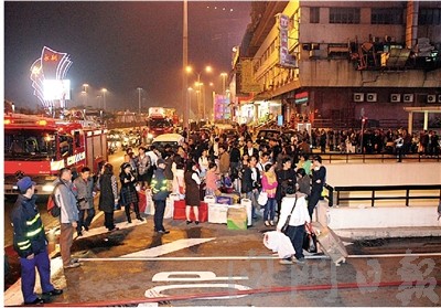 逾四百住客疏散到街上暫避。(圖片來源:澳門日報)