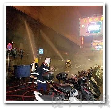 消防員射水灌救。(圖片來源:澳門日報)