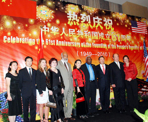 中新網(wǎng)9月24日電 據(jù)美國《芝加哥華語論壇》報(bào)道,當(dāng)?shù)貢r(shí)間9月23日晚,中國駐芝加哥總領(lǐng)事楊國強(qiáng)及夫人舉辦盛大招待會(huì),熱烈慶祝中華人民共和國成立61周年。包括伊利諾州州長和芝加哥市市長的代表、州參眾兩院議員代表、庫克郡財(cái)長等在內(nèi)的近六百多位中外嘉賓出席。