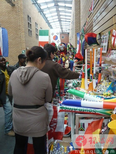 穿行在這里的商鋪之間,安全感和親切感倍增,到處是黃皮膚黑頭發(fā),還有不時(shí)會(huì)飄送過來的鄉(xiāng)音。商城中的狂歡氣氛相當(dāng)濃重,所有的走道里扎滿了世界杯32強(qiáng)的國旗。商鋪中最受歡迎的也是售賣世界杯相關(guān)商品的,每走幾步,就可以看到許多非華人的買家聚集在售賣球衣、球服、大喇叭的攤位前問價(jià),而站在旁拍照的記者,竟因?yàn)殚L著華人的面孔,被屢屢誤認(rèn)為是老板,遭問了不下十幾次“這個(gè)值多少錢?”實(shí)際上,世界杯官方的球衣和紀(jì)念品幾乎全都是中國制造的,當(dāng)然,百家商城里出售的商品多數(shù)是沒有授權(quán)的“山寨版”,比正版貨的價(jià)格便宜數(shù)倍,因此南非各地的人,也有不少專程跑到中國城來批發(fā)便宜貨。看來,世界杯又能讓南非華人大賺一筆了。(底婕)