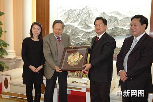 會(huì)見(jiàn)后,駱文智向楊氏伉儷贈(zèng)送了潮州特色的潮繡“金牡丹”,并宴請(qǐng)了楊氏伉儷。晚宴后,楊振寧夫婦還在駱文智的陪同下,參觀了潮州市傳統(tǒng)工藝精品館、潮州文化藝術(shù)中心和潮州博物館。完