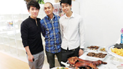 三位尚在大學就讀的香港青年(右起)羅語邦、余韋龍、麥偉梁,在課余合資引入亞洲火紅的微型創業“格仔鋪”。(美國《星島日報》圖 麥偉梁提供)