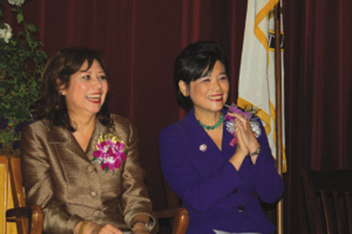 8月30日位于蒙特利公園市的東洛杉磯學(xué)院禮堂里擠滿了來自四面八方的人們,他們一同見證了趙美心宣誓就職,成為美國首位國會華裔女議員。百老匯華裔歌星楊呈偉(Welly Yang)一曲“不可能的夢想”(The Impossible Dream)唱出了趙美心和為她宣誓就職的美國勞工部長希爾達·索莉絲兩位少數(shù)族裔女性政治家的心聲。