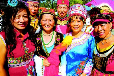 1977年赴美的臺灣原住民曹開梅女士此次第一次與會,身著靚麗民族服飾與許多來自中國大陸的回族、滿族、彝族等少數(shù)民族朋友一起組成少數(shù)民族方陣,亮相蒙市升旗儀式。