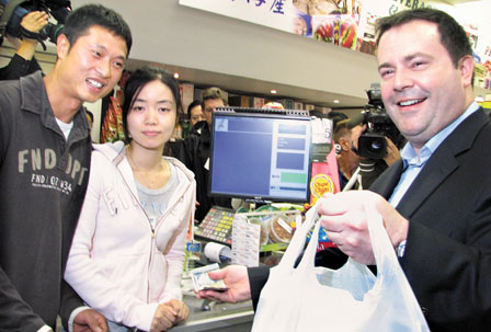 移民部長康尼27日探訪陳旺時,曾參觀過他們一家于超市樓上的睡房,也在超市內購買了飲料及其它物品。