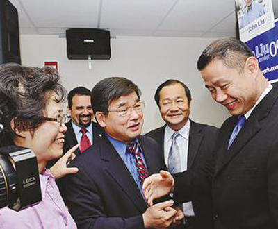 中新網11月6日電 據美國《世界日報》報道,忙于謝票的紐約第20選區現任市議員、候任市主計長華裔劉醇逸和候任華裔市議員顧雅明4日早上在華策會福壽老人中心喜相逢,兩人熱情擁抱,互相祝賀創造歷史,并表示兩人將馬上開始著手交接工作,使法拉盛民眾的服務不因為市議員的更替而中斷。