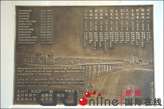 90多年前,13名華工迫于生計,告別家鄉,長途跋涉,踏上了處在硝煙彌漫中的歐洲大陸。在比利時的坡泊林,他們參與了協約國的戰地后勤工作,并與當地群眾結下了深厚的友誼。13名華工全部來自中國山東省。1917年11月15日,他們在德軍空襲中喪生。遇難后,他們被同伴葬于坡泊林的一條小河邊。