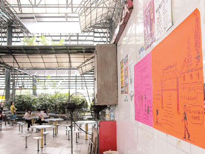 張貼在飲食中心周圍的有關(guān)漫畫大字報顏色非常鮮艷,內(nèi)容都是以“馬華武林大會”、“支持特大”、“翁大使要第一劍”、“中委會不支持特大”、及“雙龍出海,混云卷風,龍虎斗,必有一傷”,及勸人退一步海闊天空等字眼。