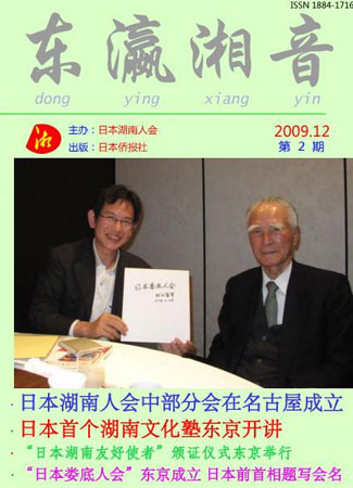 日本湖南人會今年5月24日在東京成立,半年多來,堅持弘揚湖湘文化、促進中日友好的宗旨,開展了豐富多彩的活動,受到日中兩國的廣泛關注。7月24日,日本湖南人會成立兩個月之際,電子版會刊《東瀛湘音》創刊,日本參議院議長江田五月先生題寫了刊名。這是在日華文媒體中第一份創刊之際便取得了國際標準刊號(ISSN 1884-1716)、也是第一份專門報道在日湖南人的電子雜志。